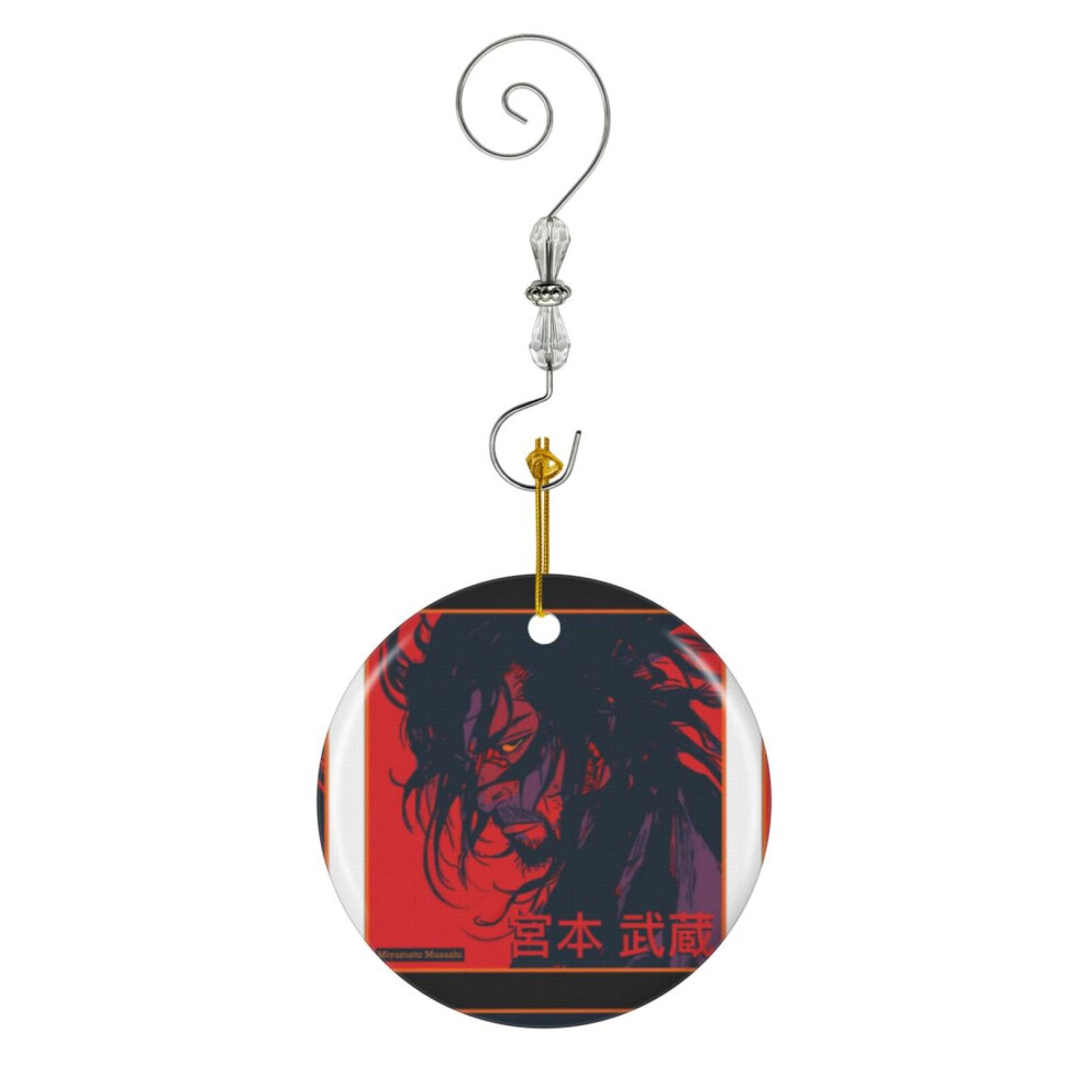 (Animal Vagabond Musashi Miyamoto-5679) Christmas Ornaments Ceramic Charm with Hook Crystal Handmade Xmas Tree Decorations Keepsake Stocking Stuffer