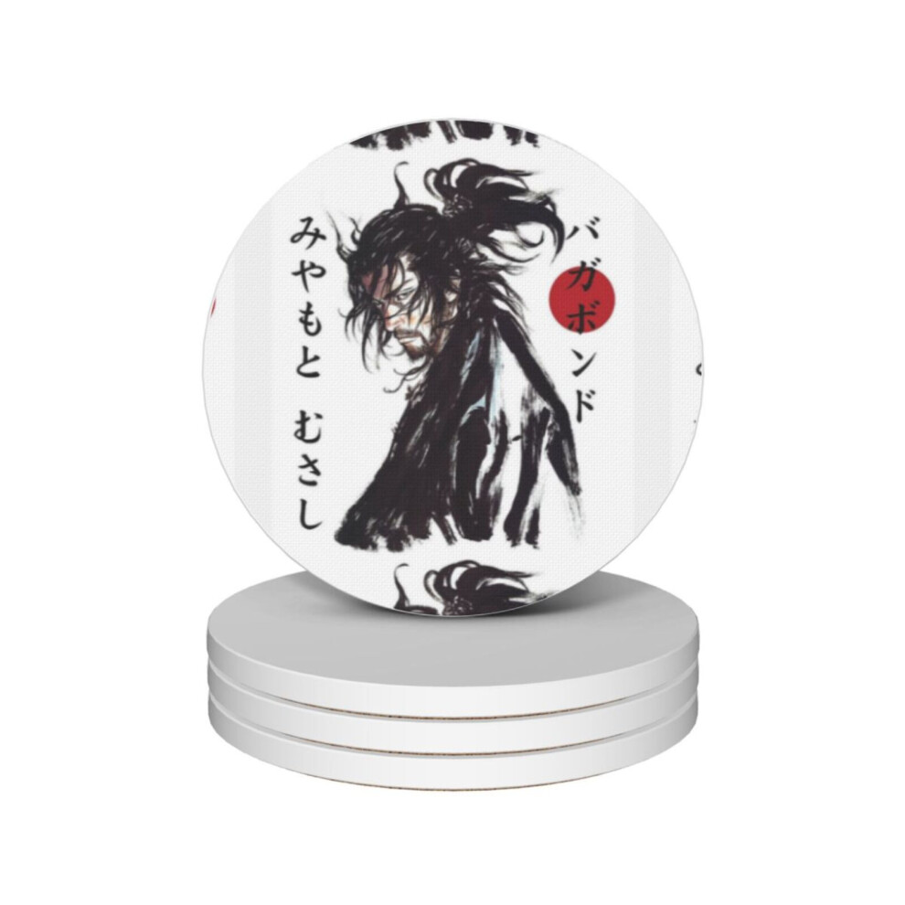 (Animal Vagabond Musashi Miyamoto=5679) Ceramic Coasters Set of 4 Xmas for Drink Wine Beer Bar with Cork Base Housewarming Birthday Christmas Gift