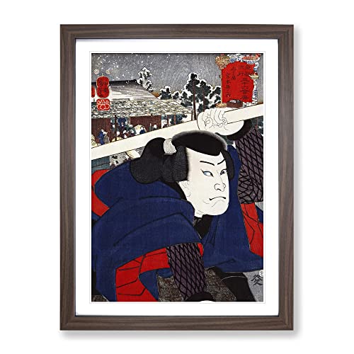 Mukojima Miyamoto Musashi By Utagawa Kuniyoshi Asian Japanese Framed Wall Art Print, Ready to Hang Picture for Living Room Bedroom Home Office Décor, Walnut A2 (64 x 46 cm)