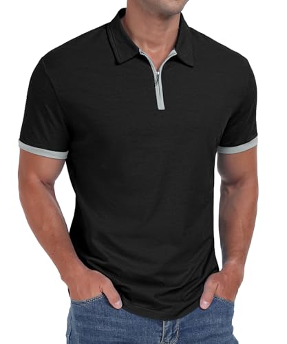 Sailwind Men Polo Shirts for Men Adult Short Sleeve Zip Muscle Fit T Shirts Comfortable Lapel Men's Clothing Fashion Top (Black, S)