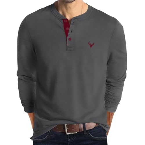 Sailwind Men's Henley Tshirt Summer Cotton Plain T Shirts for Men Comfortable Muscle Fit Running Grandad Tops (Dark Gray, S)