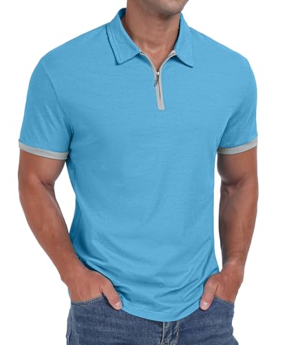 Sailwind Men Polo Shirts for Men Adult Short Sleeve Zip Muscle Fit T Shirts Comfortable Lapel Men's Clothing Fashion Top (Blue, XL)