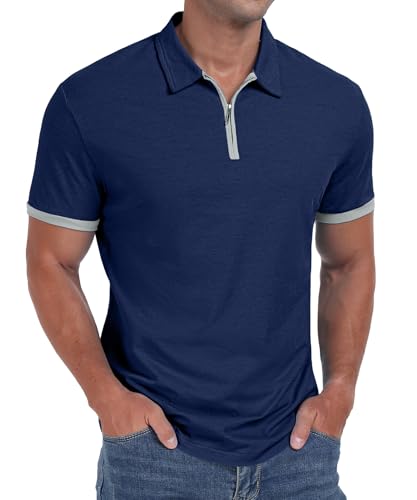 Sailwind Men Polo Shirts for Men Adult Short Sleeve Zip Muscle Fit T Shirts Comfortable Lapel Men's Clothing Fashion Top (Navy Blue, S)