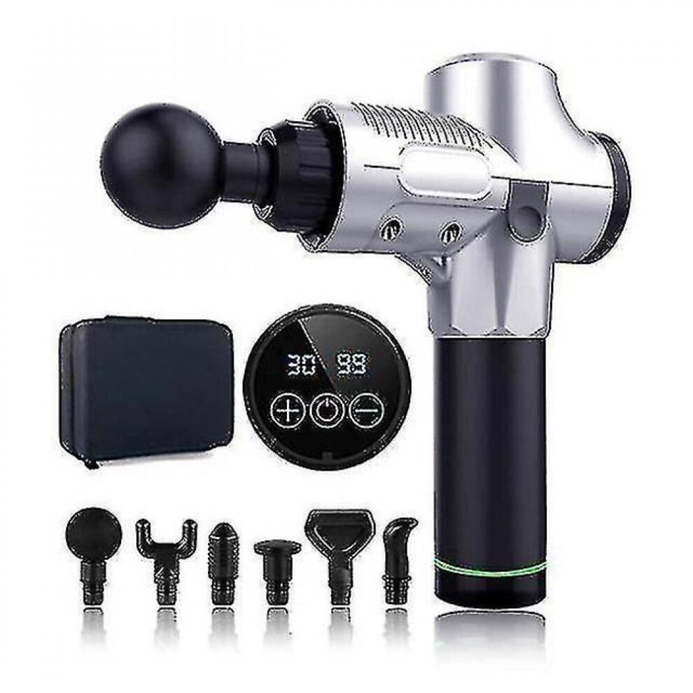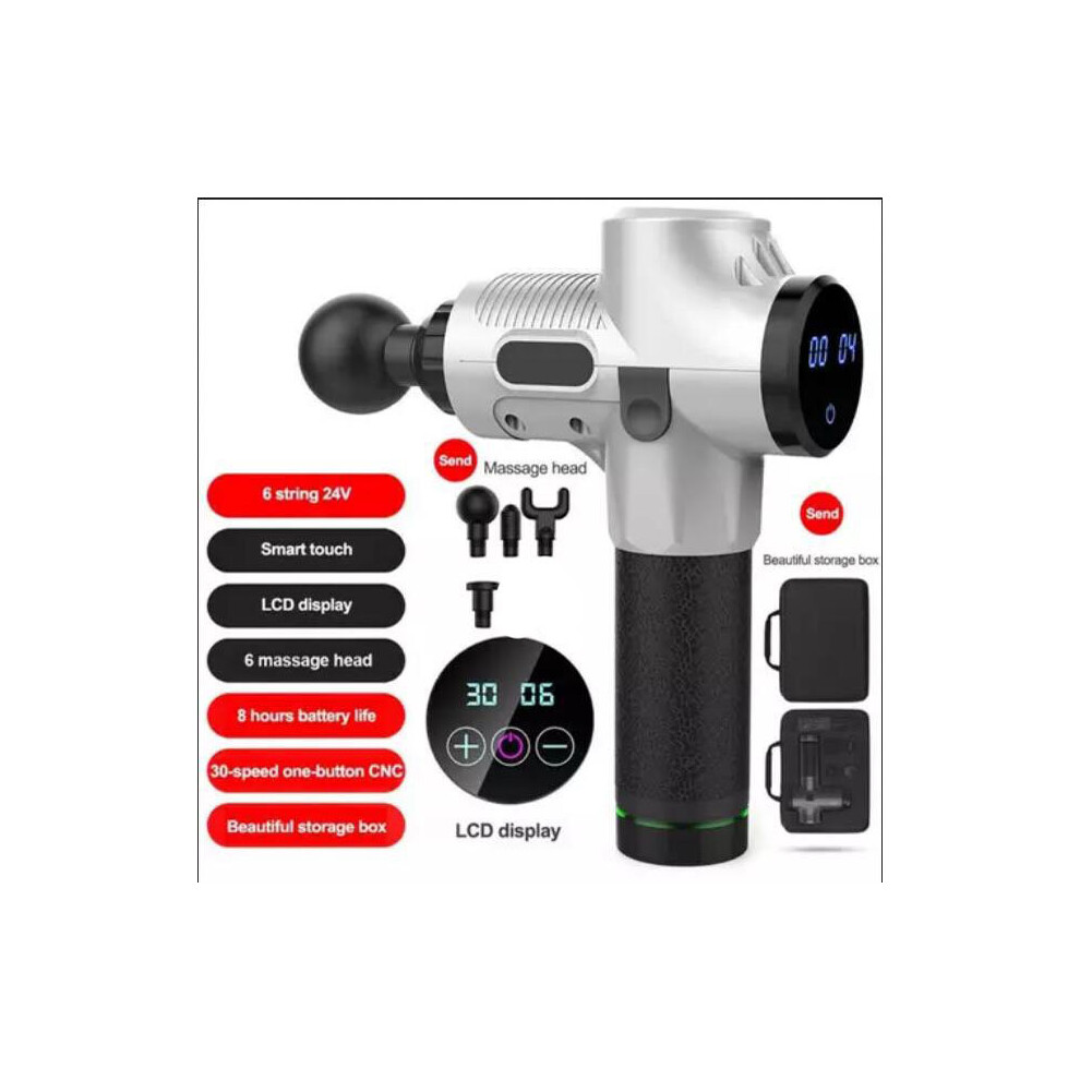 LCD Display Body Massage Gun Exercising Muscle Electric Massager Gun head Massager Sliver