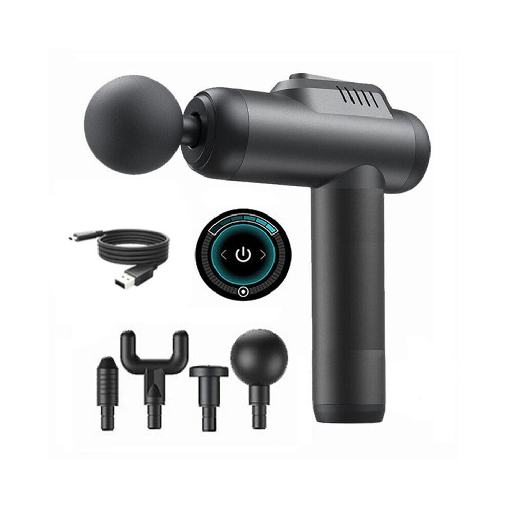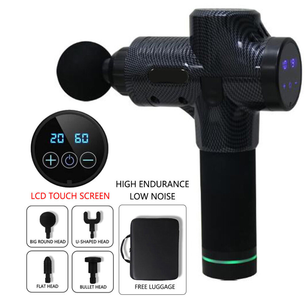 LCD Display Body Massage Gun Exercising Muscle Electric Massager Gun head Massager Waterblack