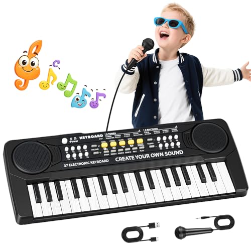 m zimoon Kids Piano Keyboard, 37 Keys Electronic Music Piano for Kids with Microphone Portable Multi-Function Musical Instruments Educational Toy Birthday Gifts for Girls Ages 3-8 Black