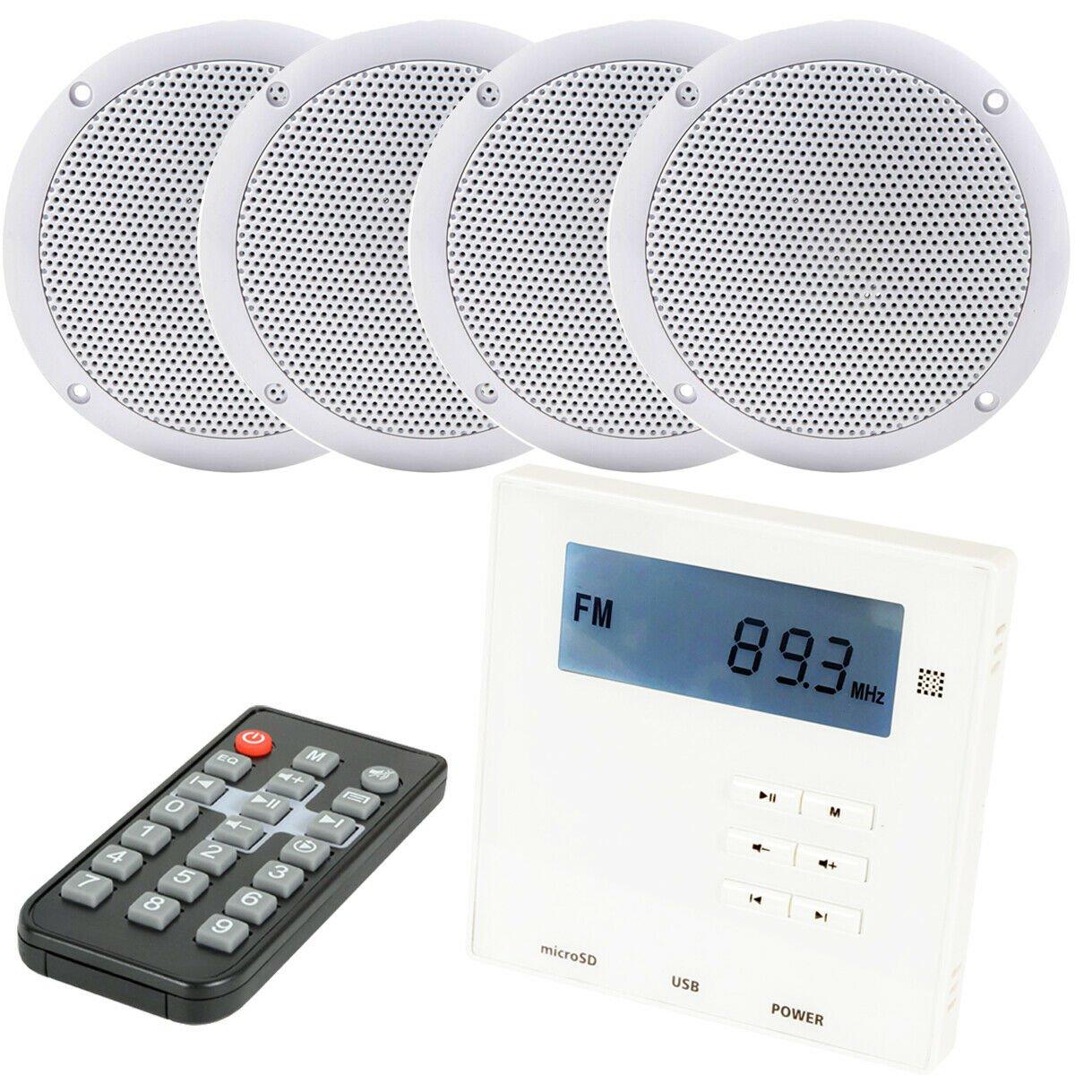 Wall Mounted Micro Bluetooth Amplifier & 4 Ceiling Speaker Kit Stereo HiFi Music