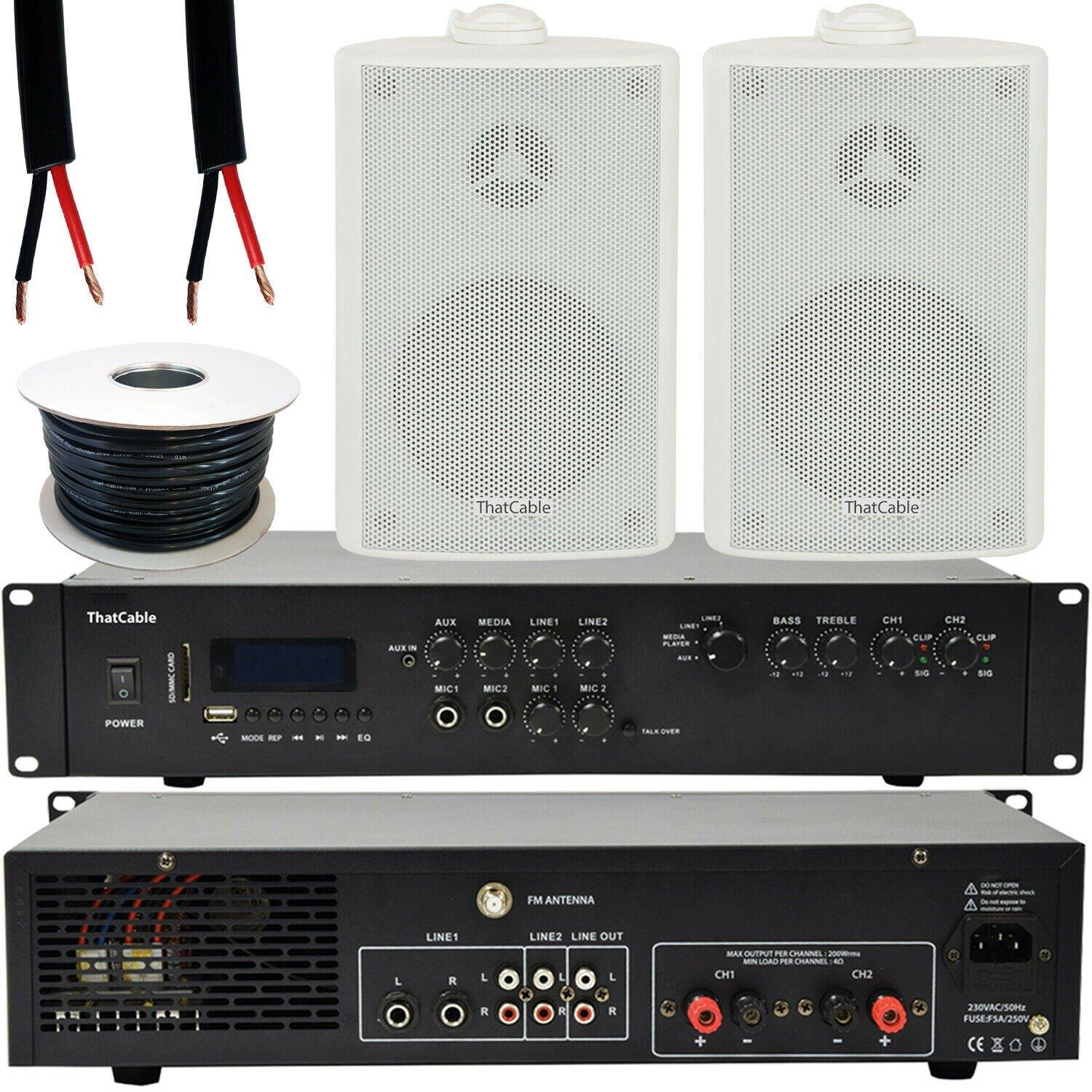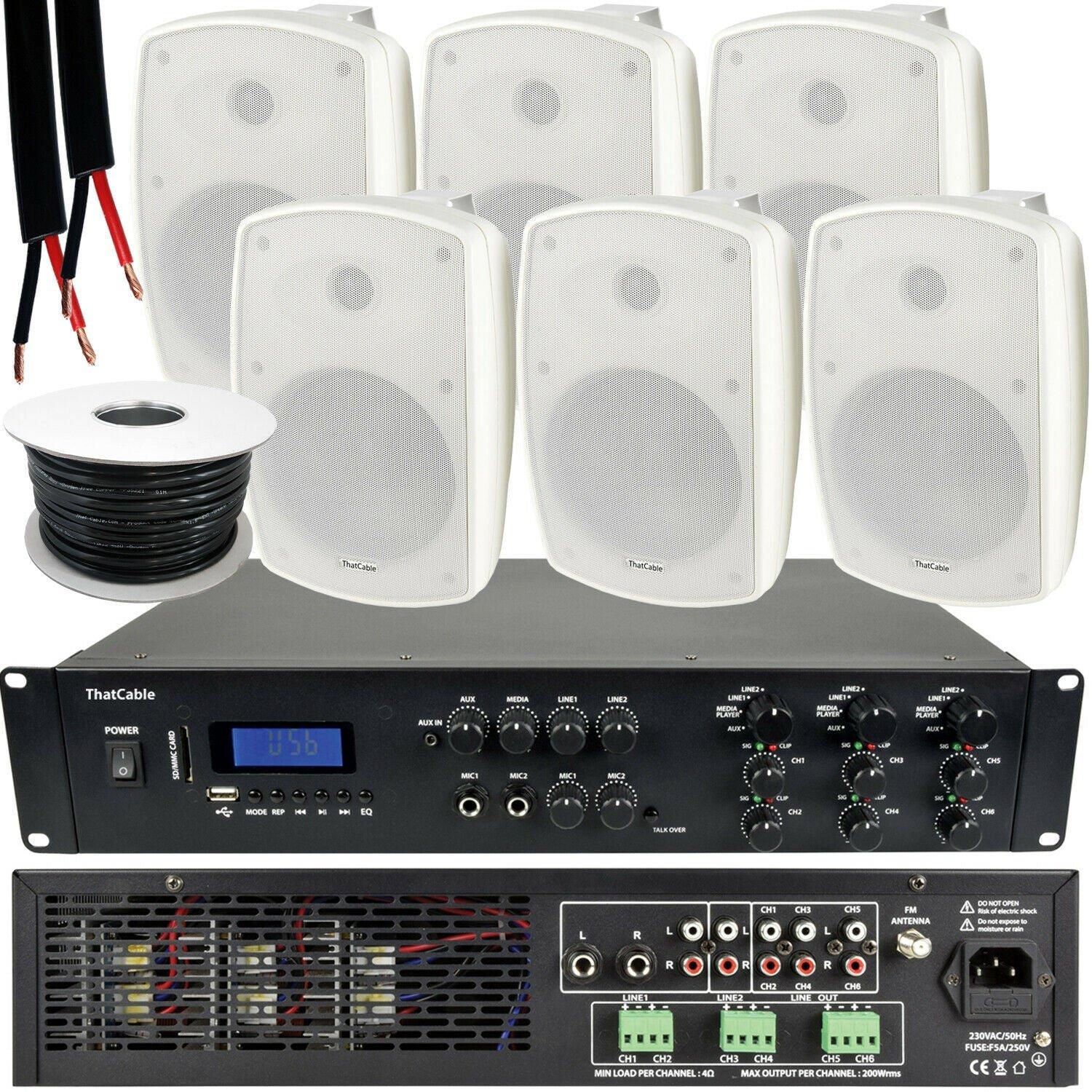 Bluetooth Wall Speaker Kit 3 Zone Stereo Amp & 6x White Wall Background Music