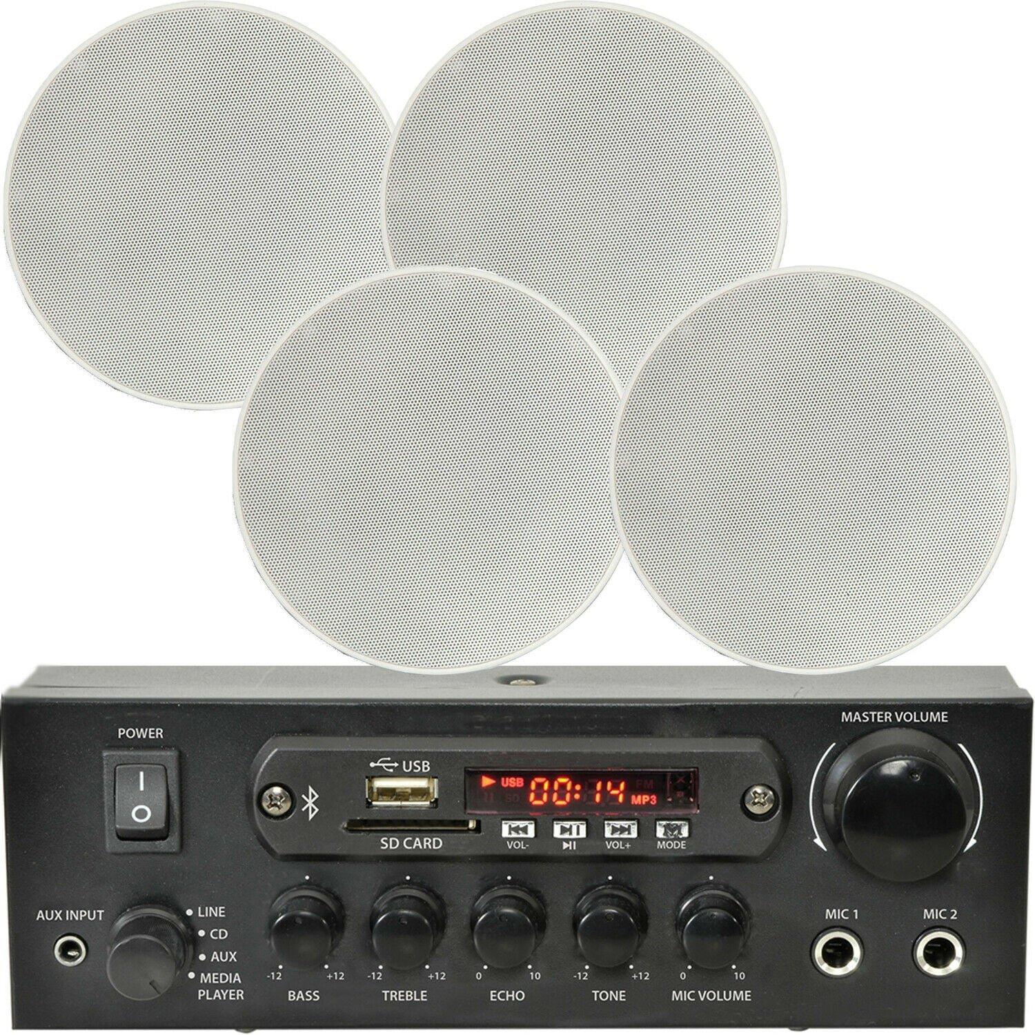 Home Restaurant 4x Ceiling Speaker Bluetooth Wireless Background Music Amp Kit