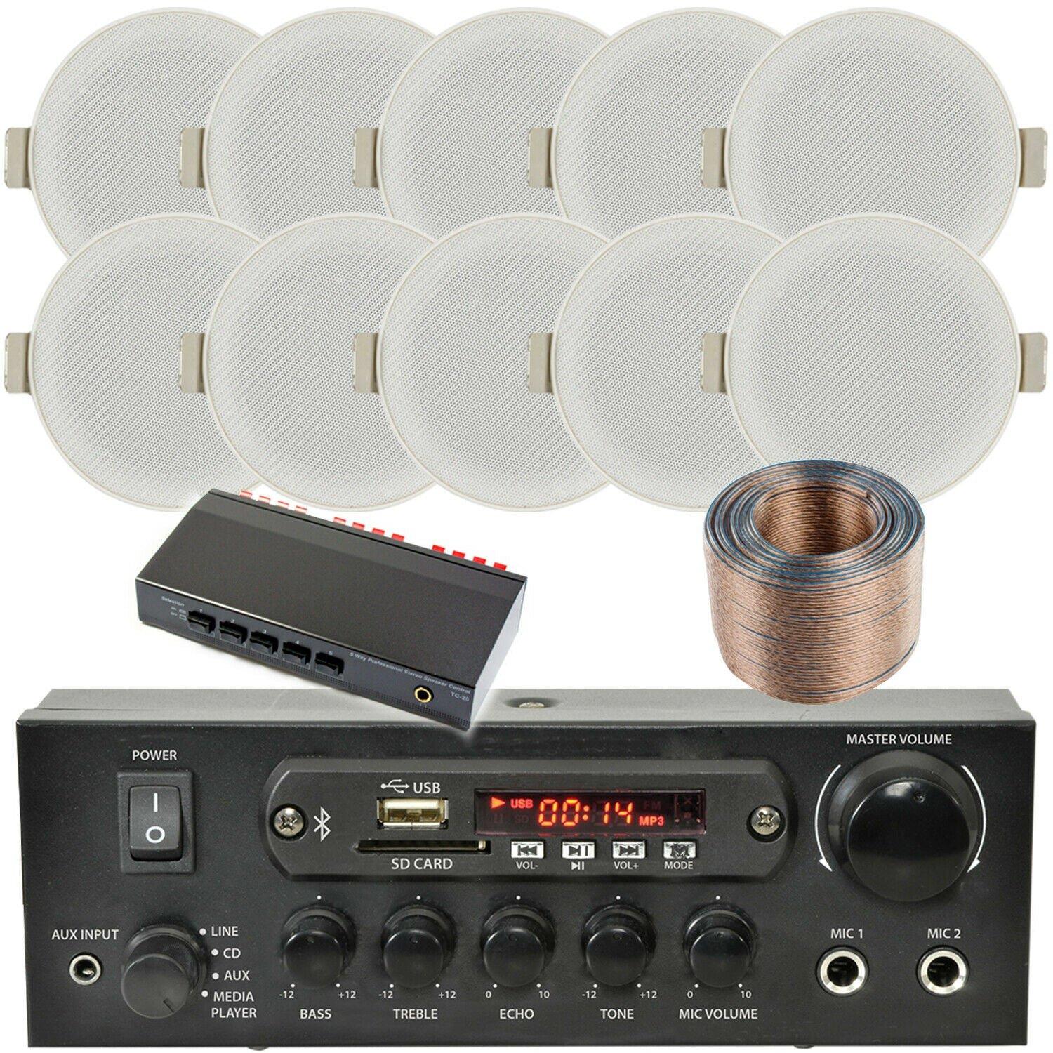 10 Speaker 5 Zone Background Music Kit Bluetooth Sound System Restaurant Shop