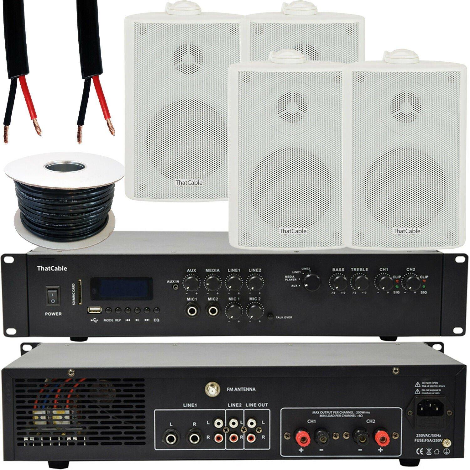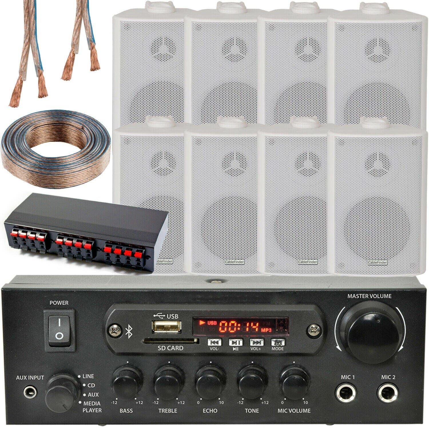 Bluetooth Wall Speaker Kit 4 Zone Stereo Amp & 8x White Wall Background Music