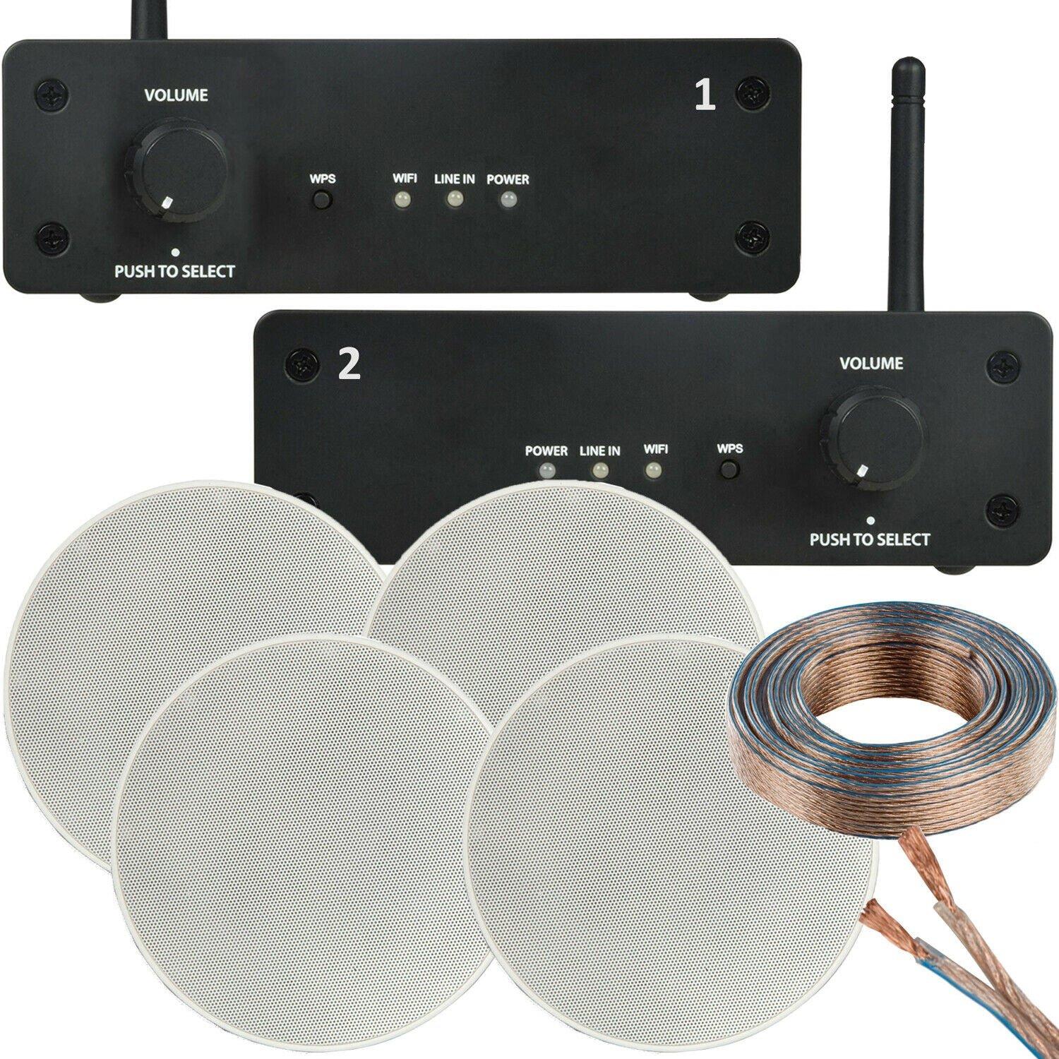 Multi Zone WiFi Ceiling Speaker System 2 Room 80W Wireless Music Streaming Kit