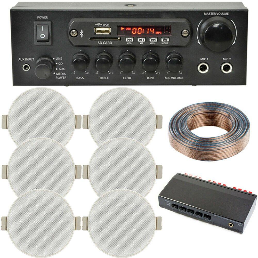 Bluetooth Ceiling Music Kit 3 Zone Stereo Amp & 6x Low Profile HiFi Speaker