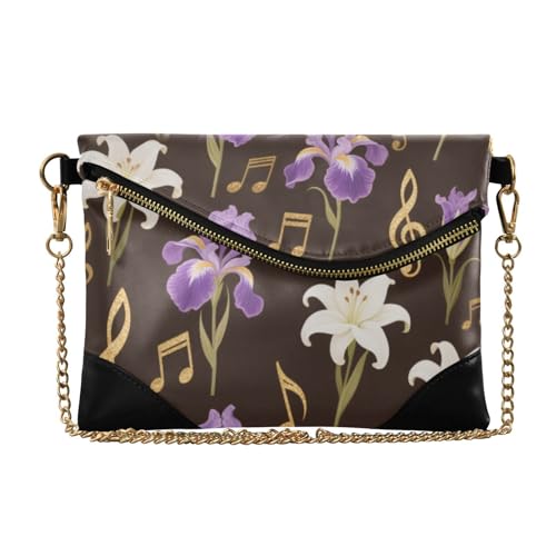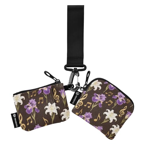 SyXIOP Women's Leather Wristlet Clutch Purse Casual Evening Purses for Lady Flowers Music Pattern