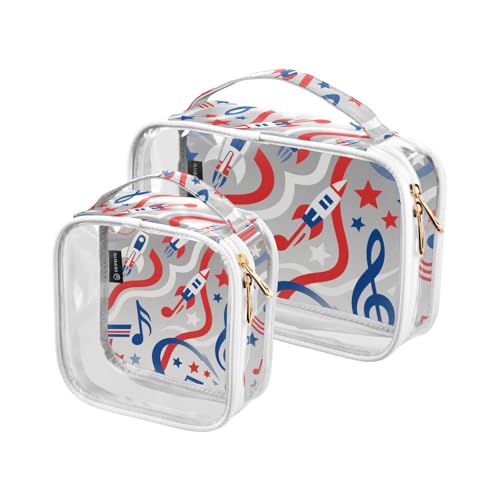 Music Red Blue White 2 Pack Clear Men Toiletry Bag TSA Approved Reusable Makeup Travel Bag Shaving Essentials para maquillaje