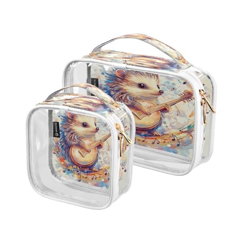 Rural Music Hedgehog Cute 2 Pack Clear Toiletry Bags for Traveling Women TSA Approved Portable Travel Makeup Bag Shaving Essentials de maquillaje para