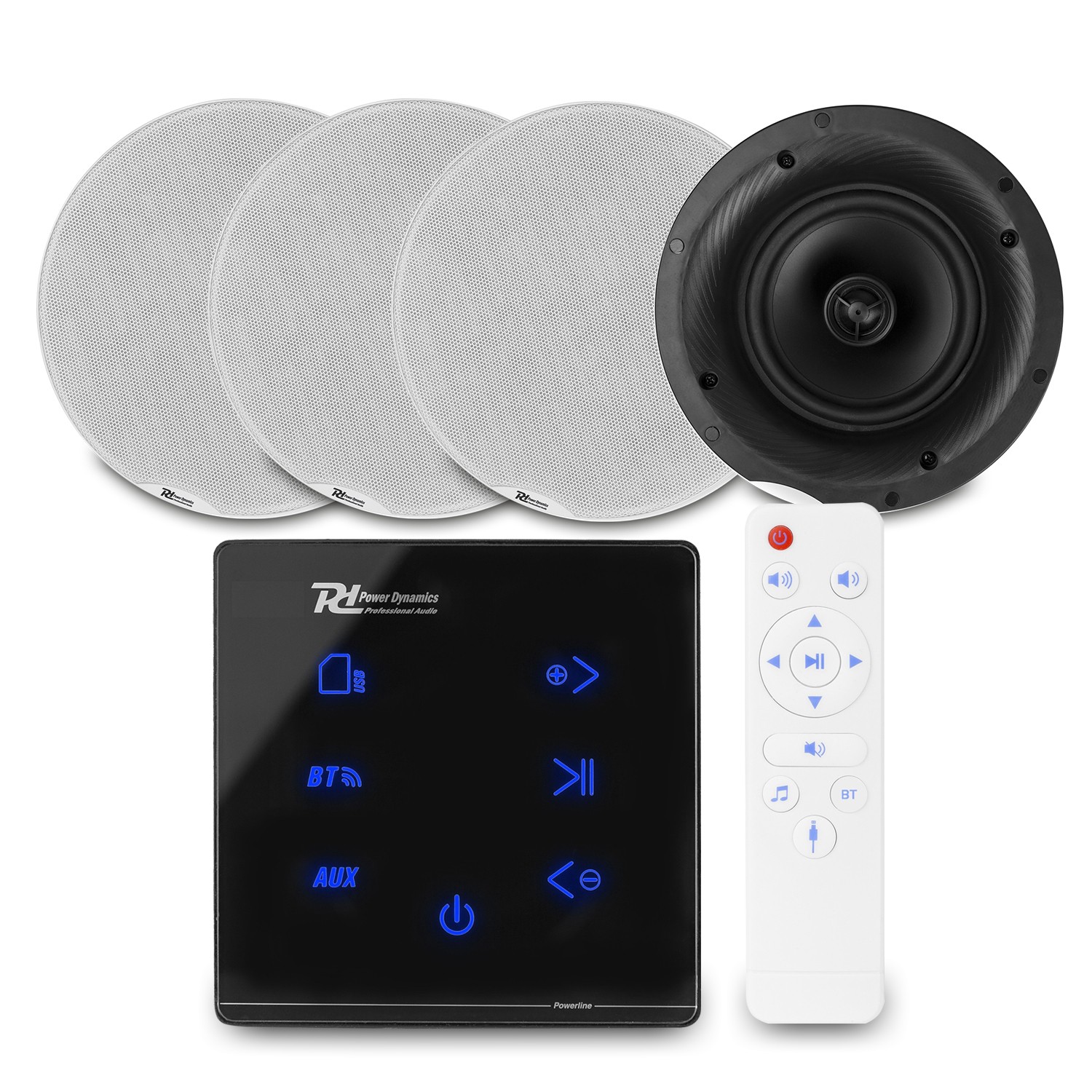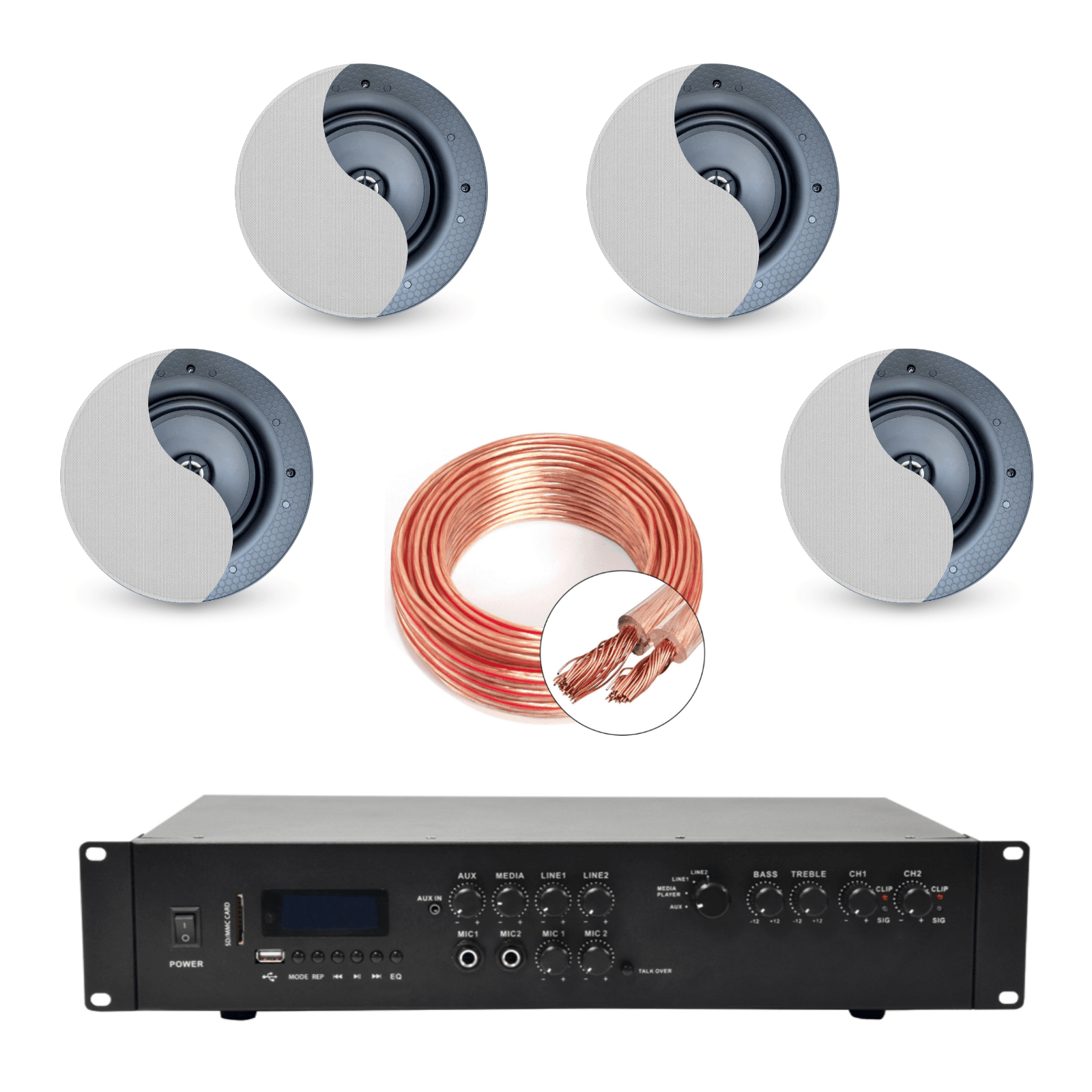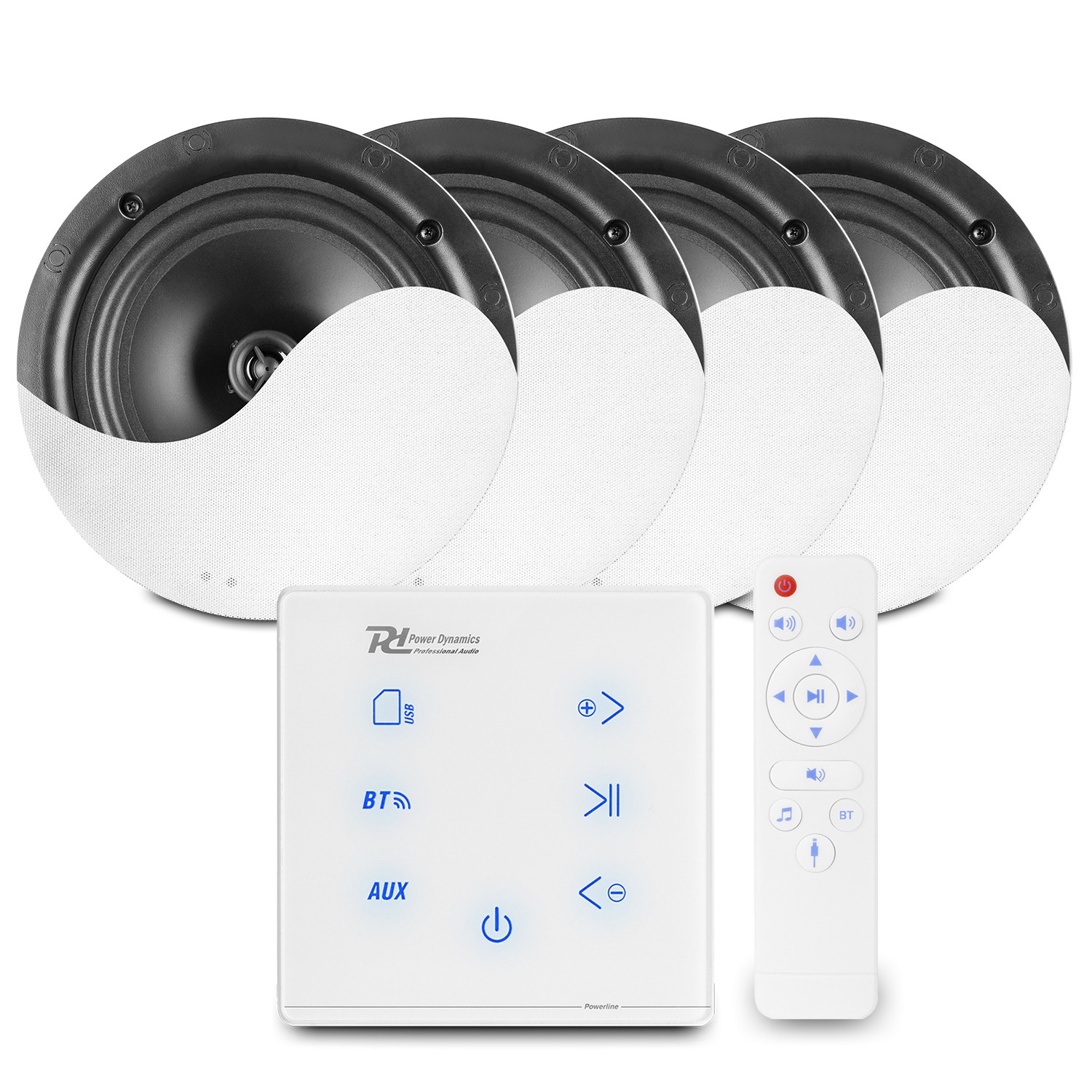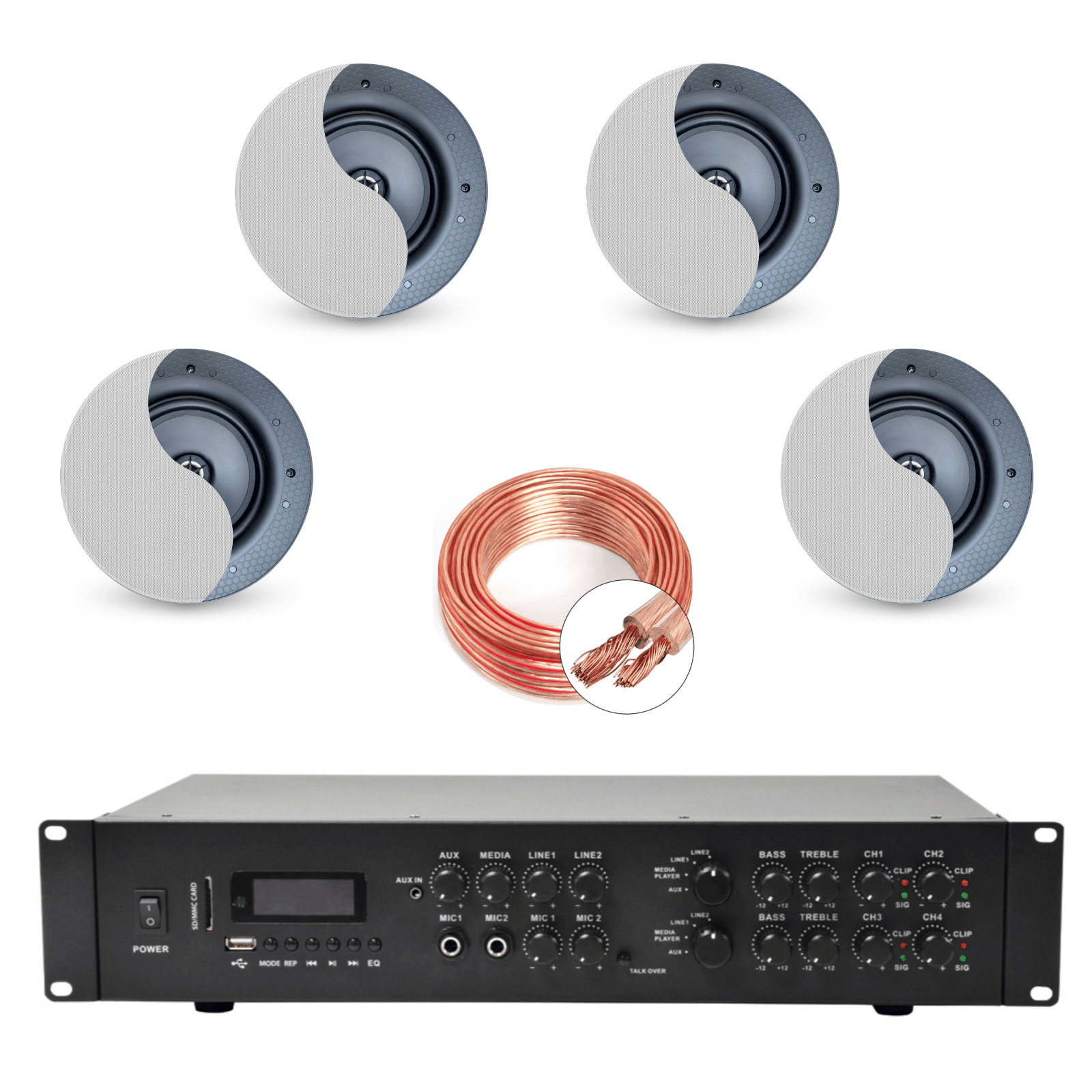 Home/Office Music System with 4 Ceiling Speakers Bluetooth MP3 FM Tuner