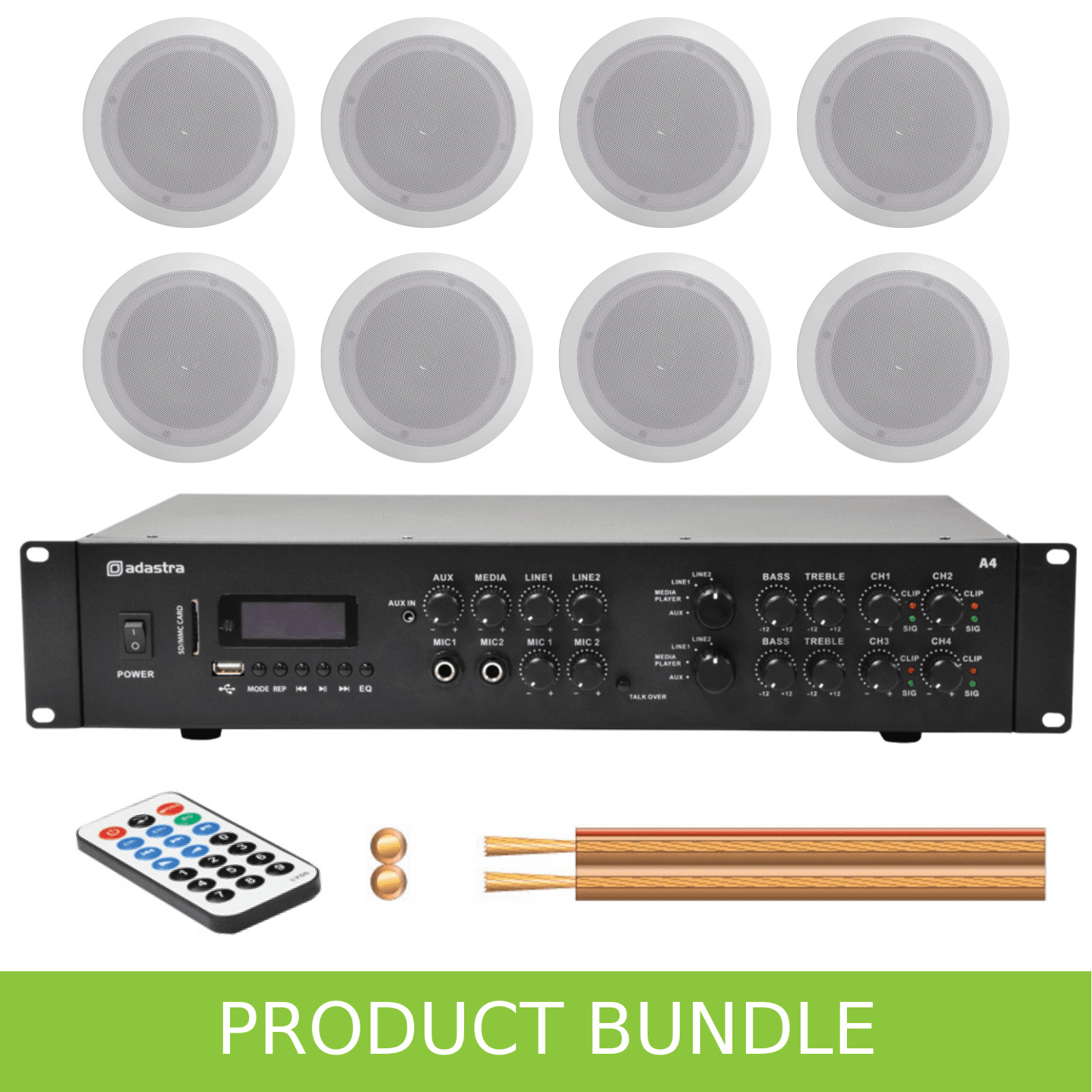 Bluetooth Ceiling Speaker Set - 4x QI65CB 6.5" and A100W Home Audio Music System