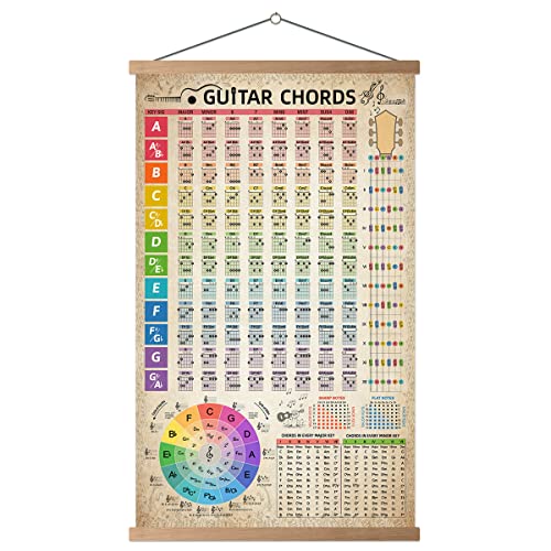HYUOEP Guitar Chords Chart Poster Reference Circle of Fifths Wheel Guitar Chords With Guide Wall Art Student Educational Music Theory Wall Art for Musicians Beginners 16"x26" (with frame)