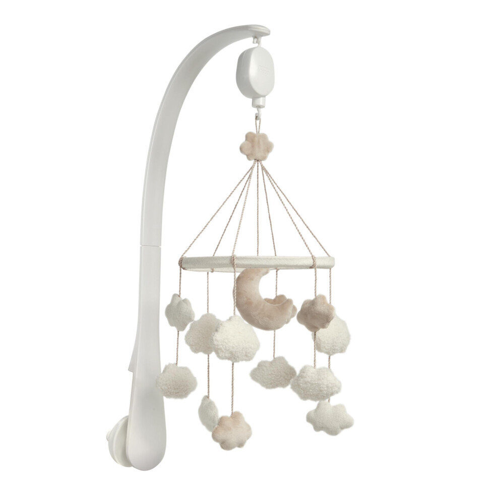 Mamas & Papas Welcome To The World Musical Cot/Cotbed Mobile, Soothing Lullaby Music, Cloud and Star Design, White