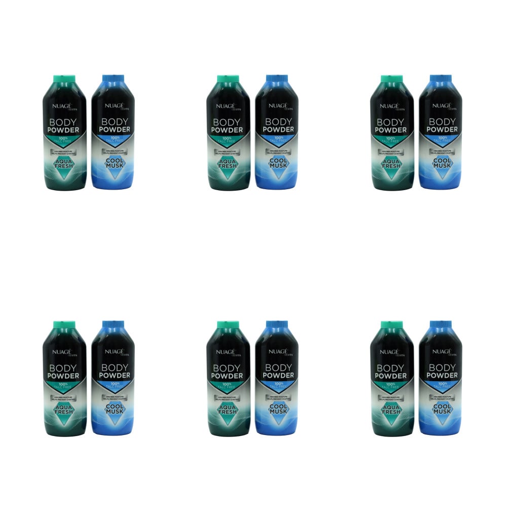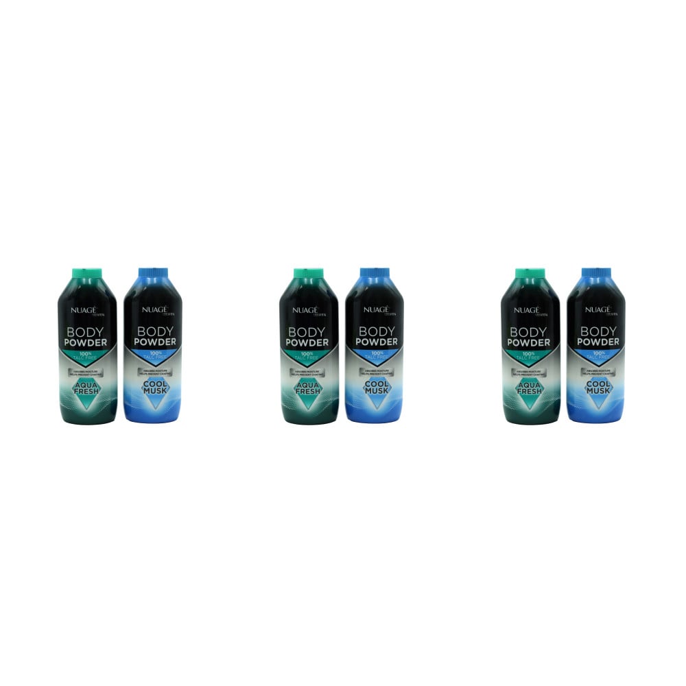 Nuage Talc-Free Men’s Body Powder,Cool Musk & Aqua Scent, 250g - Pack of 6