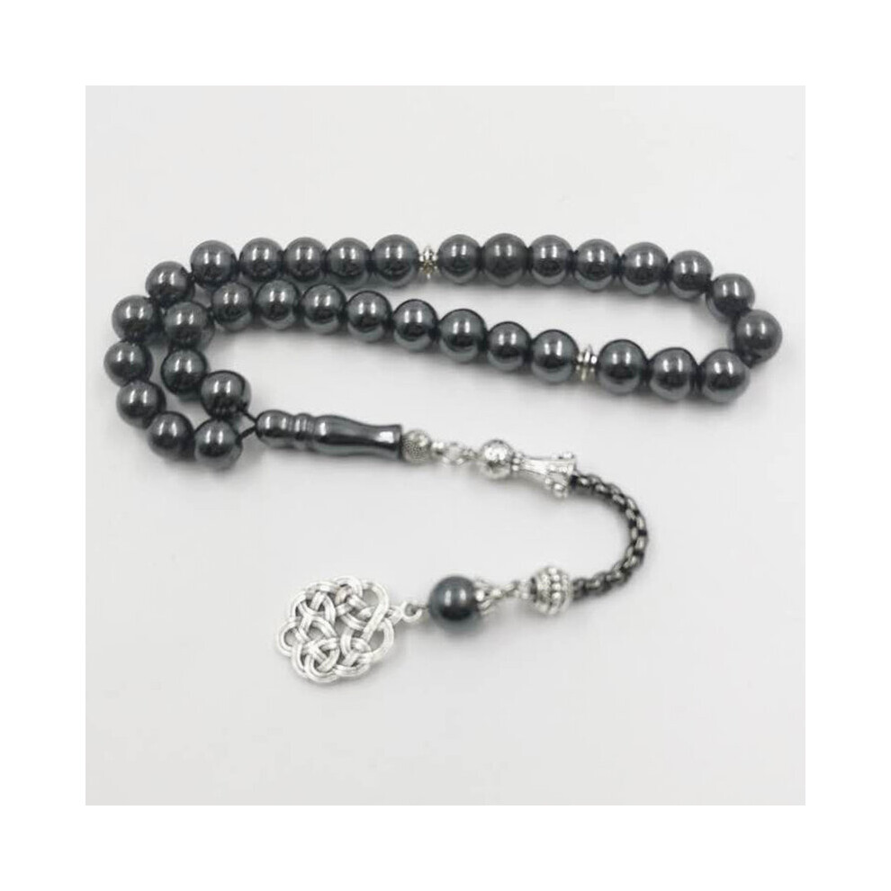 (Black, 17cm) Tasbih rosary hematite stone islam muslim prayer beads 33 sibha misbaha