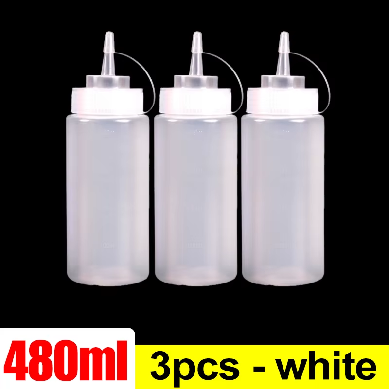600ml Kitchen Clear Plastic Squeeze Bottles Condiment Mustard Oil Salt