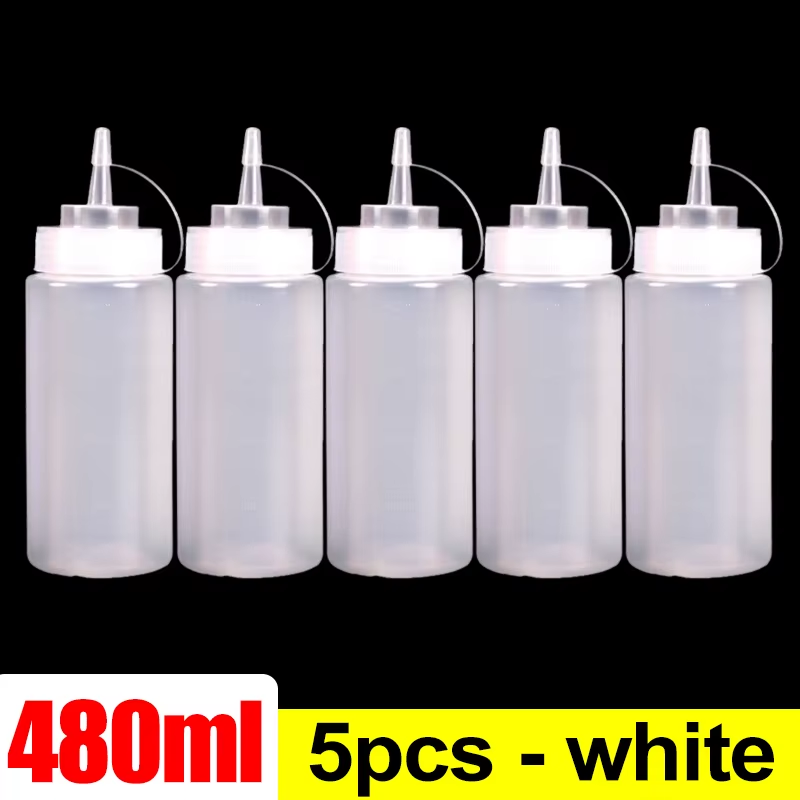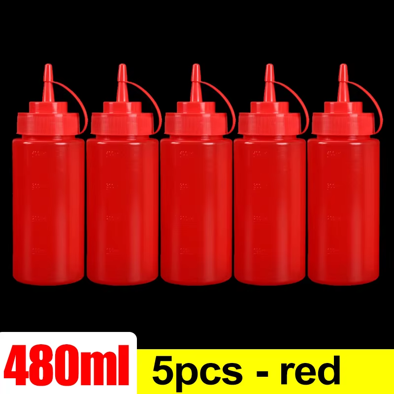 5Pcs 400ml 16oz Kitchen Food Squeeze Bottles Condiment Mustard Oil Clear