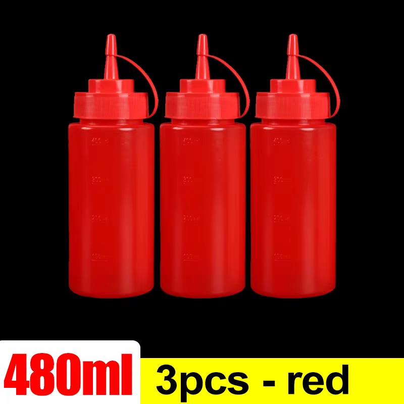 3Pcs 2 Condiment Squeeze Bottles Hot Sauces Olive Oil bottles Ketchup Mustard Di