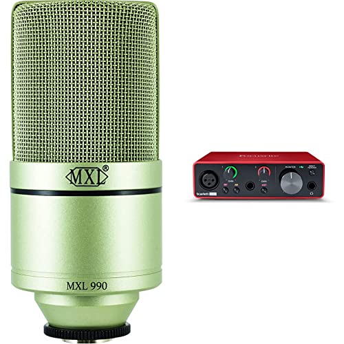 MXL 990 Condenser Microphone & Focusrite Scarlett Solo 3rd Gen USB Audio Interface, for the Guitarist, Vocalist, Podcaster or Producer, Studio Quality Sound, Red