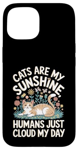 Cats Are My Sunshine Humans Just Cloud My Day Cat Owner Case for iPhone 15