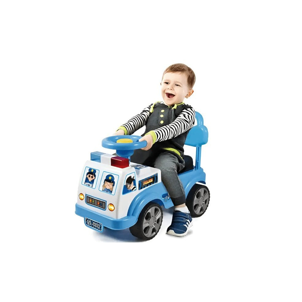 RLS My First Ride on Police Car Kids Toy Car Boys and Girls push Along Toddlers and Infants Walker with Storage