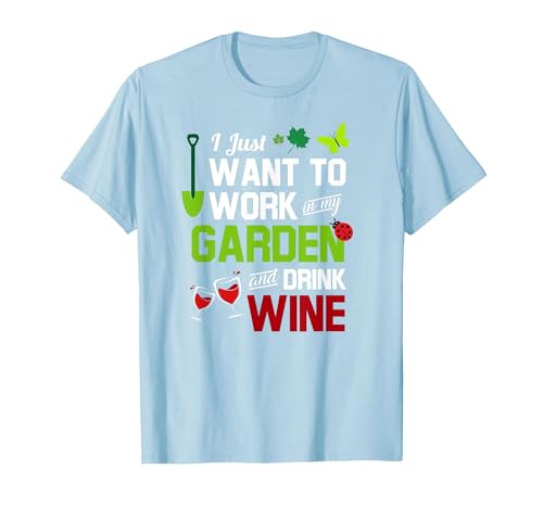 I Just Want to Work in My Garden and Drink Wine T-Shirt T-Shirt, Women, Baby Blue, X-Large