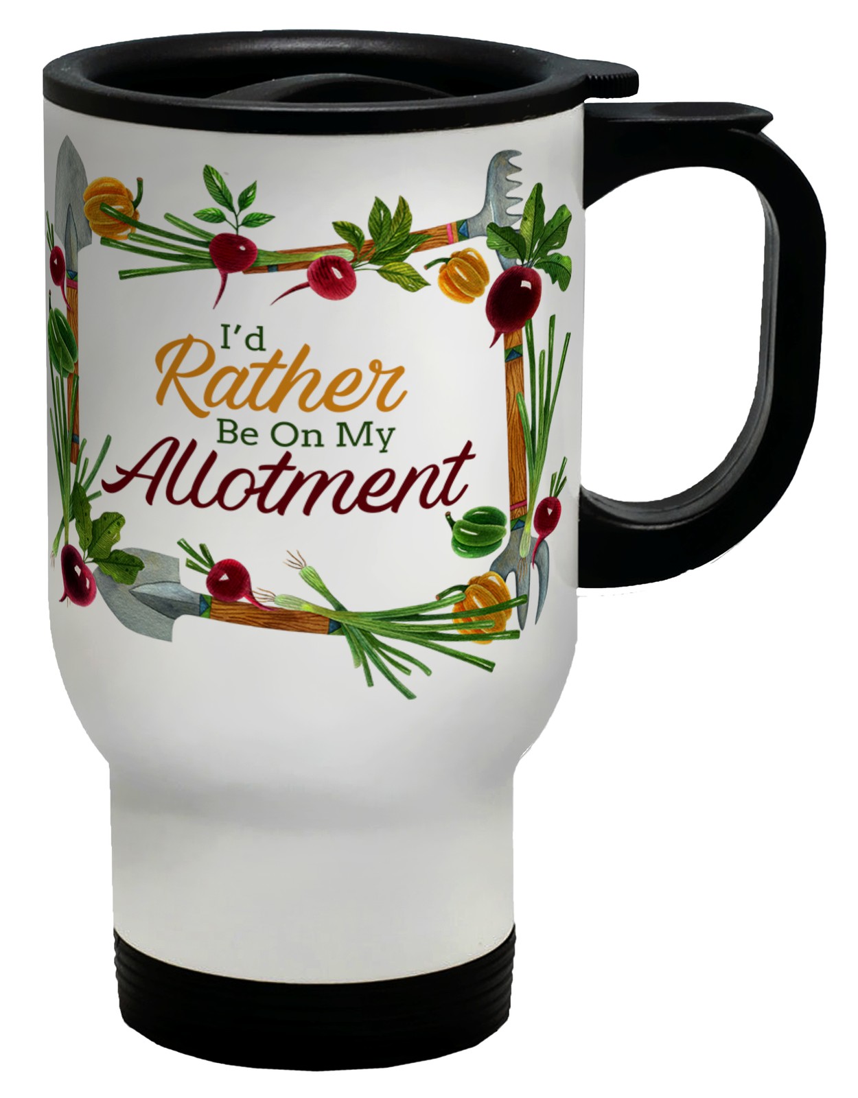 I'd Rather be on my Allotment Garden Gardening Travel Mug Cup Gift White