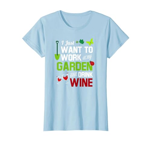 I Just Want to Work in My Garden and Drink Wine T-Shirt T-Shirt, Women, Baby Blue, X-Small
