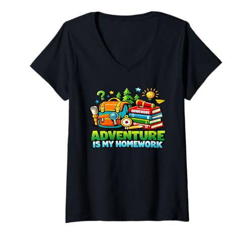 Women's Adventure is My Homework Outdoor Learning Backpack Nature V-Neck T-Shirt