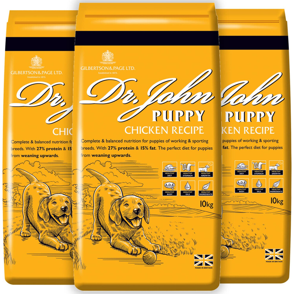 Dr John Dry Puppy Food 30kg (3 x 10kg) with Omega-3s - Chicken Recipe - Complete Nutrition for Puppies of Sporting Active Breeds - Junior High Protein
