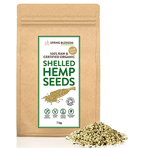 1KG Raw Organic Shelled/Hulled Hemp Seeds Hearts Healthy Vegan Snack Rich in Plant-Based Protein, Omega 3&6, Amino Acids & Minerals, Gluten-Free Superfood, in Eco-Friendly Resealable Pouch, Premium Q