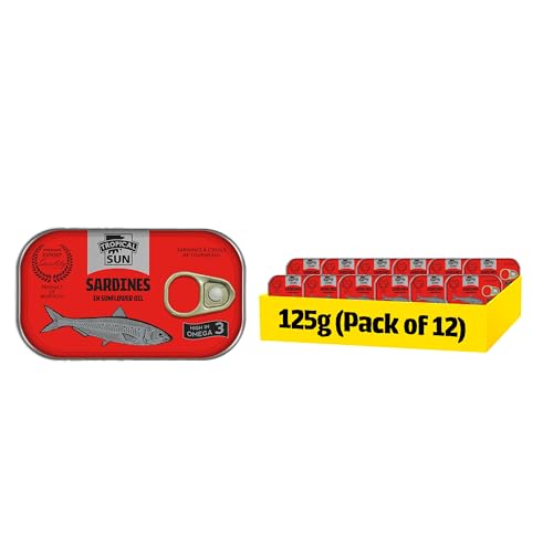 Tropical Sun Sardines in Sunflower Oil | 125g All-Natural Tinned Sardines Protein and Omega-3 | Freshly Packed Tinned Fish for a Rich & Nutritious Taste (Pack of 12)