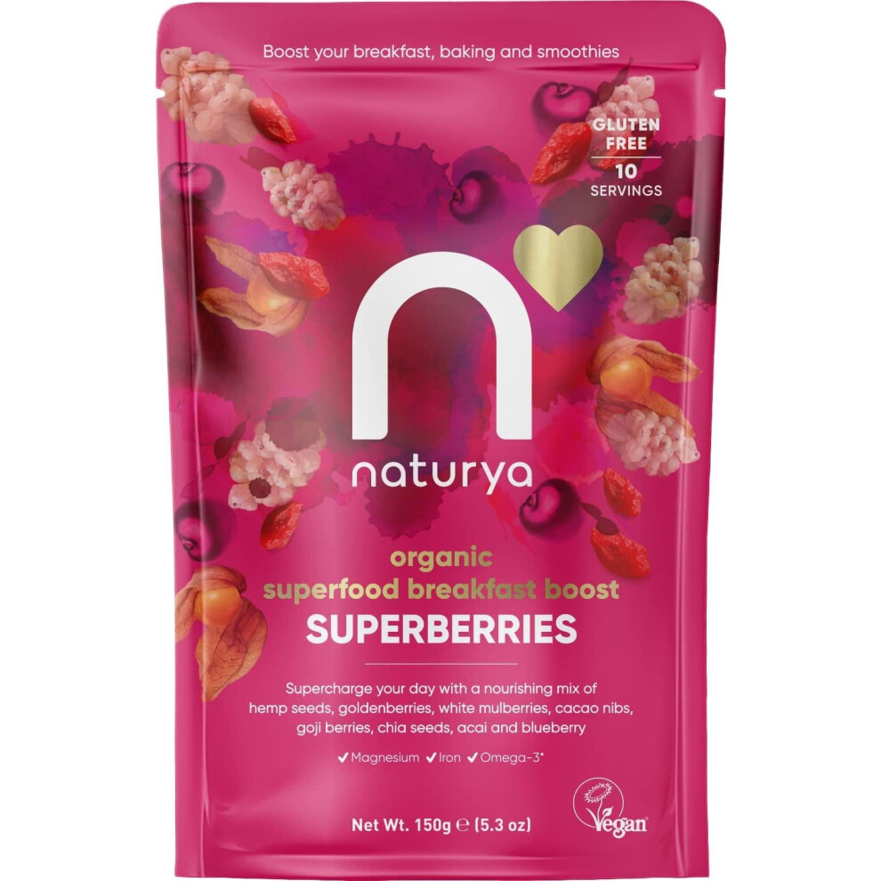 Organic Superberries Breakfast Boost - Nutrient-Rich Hemp, Goji, Goldenberries, and Chia Seeds Mix, High in Omega-3 and Protein, Vegan, Gluten-Free -