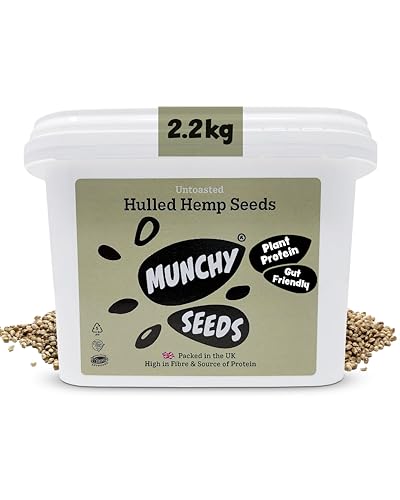 Munchy Seeds Hulled Hemp Seeds, Nutritious Unshelled Hemp Seeds, Perfect With Cereal & Oats, Great Source Of Vegan Protein & Omega 3, High Fibre Hemp Hearts, Hemp Seed Snacks, 2.2KG