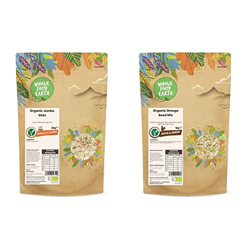 Wholefood Earth Organic Jumbo Oats – 3 kg | Vegan | GMO Free & Organic Omega Seed Mix 1 kg | A Blend of 4 Seed Mix | Raw | GMO Free | Vegan | High Fibre | High Protein | Certified Organic