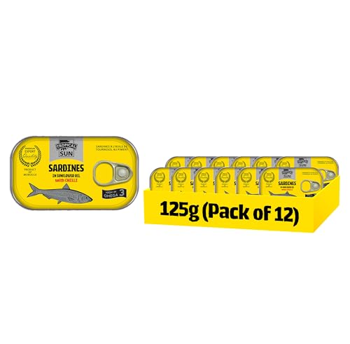 Tropical Sun Sardines in Chilli Flavour 125g (Pack of 12) | Premium Quality Sardines, Rich in Protein & Omega-3, Pre-Cooked & Ready to Eat, Ideal for Healthy Meals & Snacks