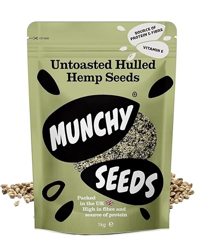 Munchy Seeds Hulled Hemp Seeds, Nutritious Unshelled Hemp Seeds, Perfect With Cereal & Oats, Great Source Of Vegan Protein & Omega 3, High Fibre Hemp Hearts, Hemp Seed Snacks, 1kg