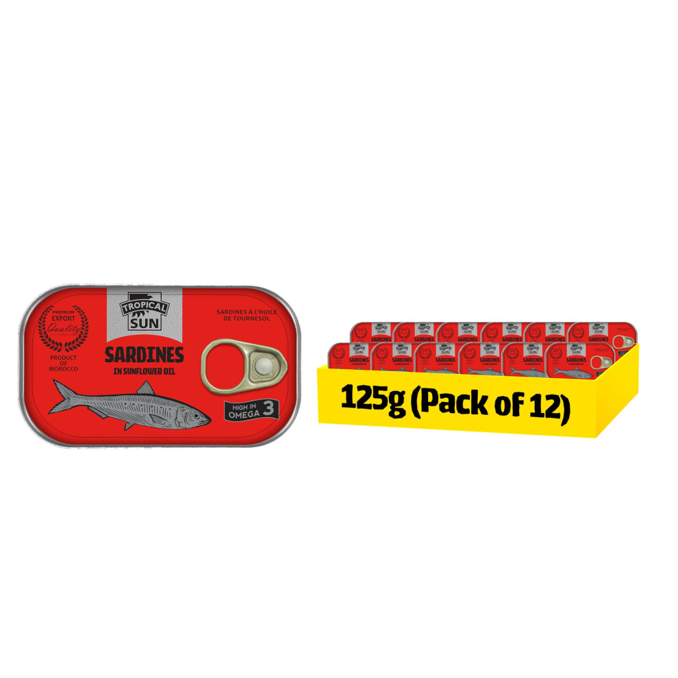 Tropical Sun Sardines in Sunflower Oil | 125g All-Natural Tinned Sardines Protein and Omega-3 | Freshly Packed Tinned Fish for a Rich & Nutritious