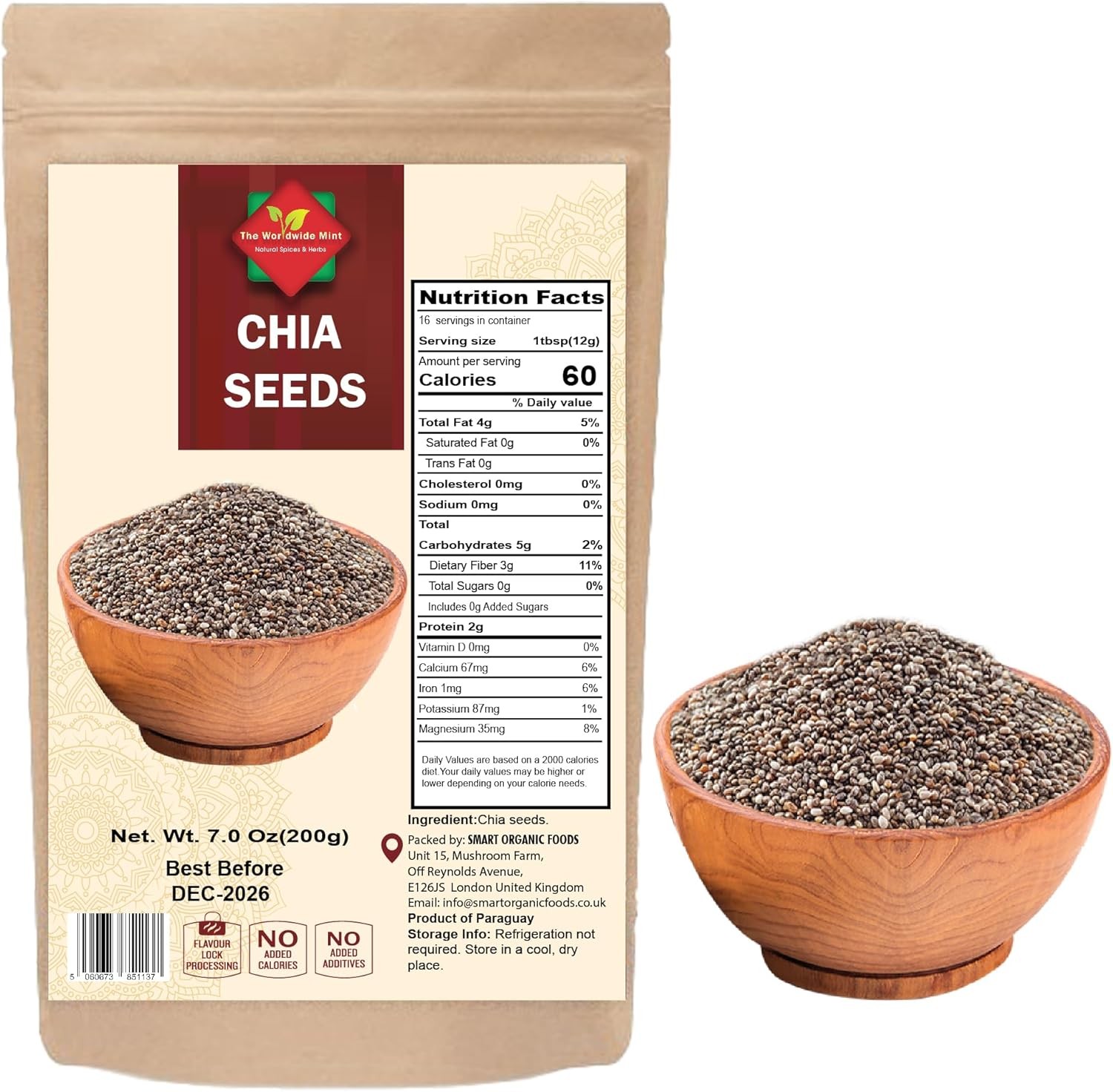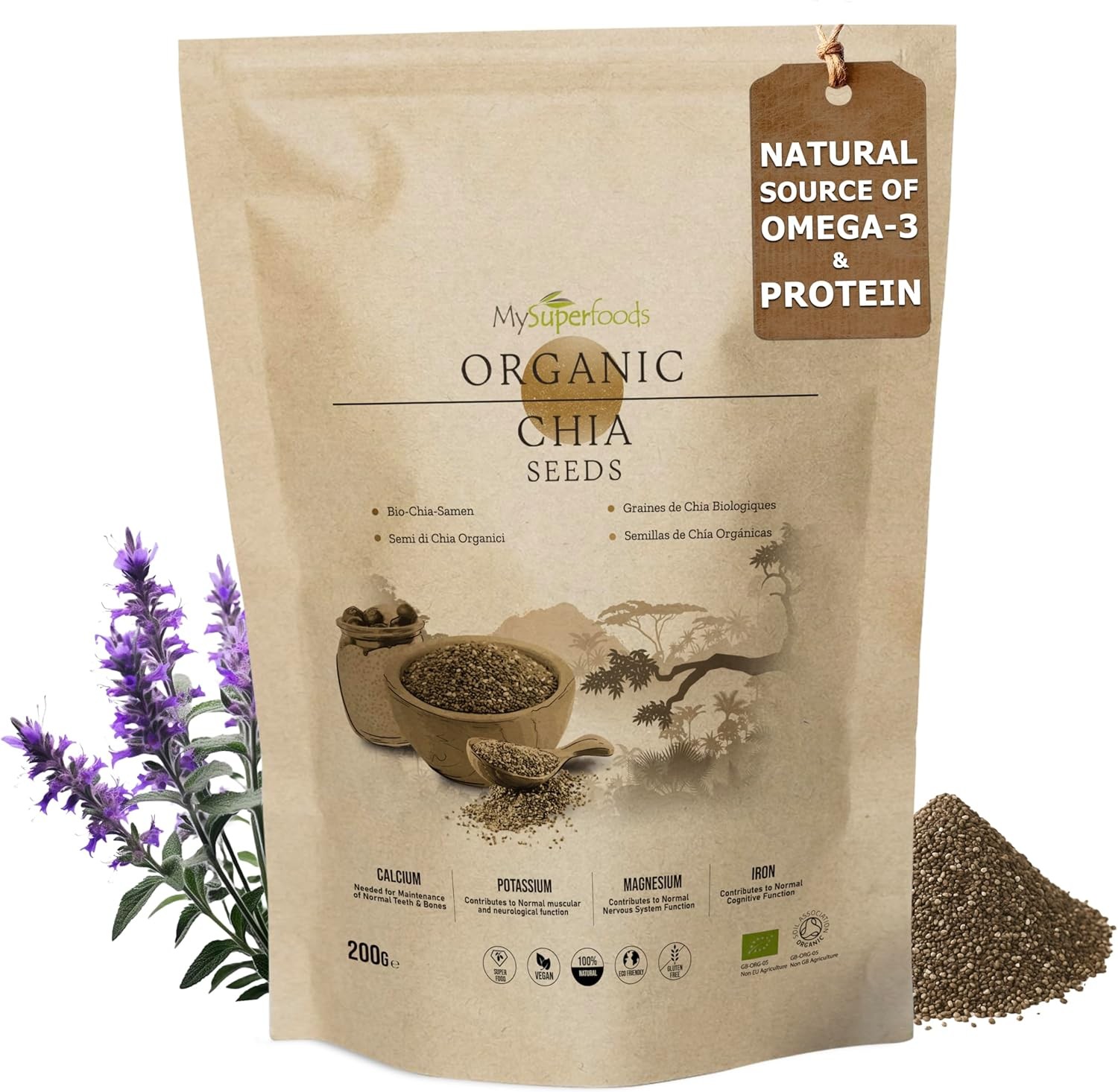 Chia Seeds 200g – 100% Natural, High in Omega-3, Fibre & Protein – Vegan, G