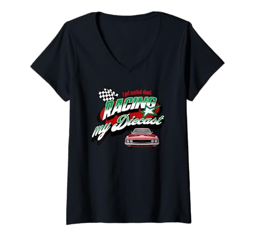 Women's Fun Humorous I get Excited About Racing My diecast V-Neck T-Shirt