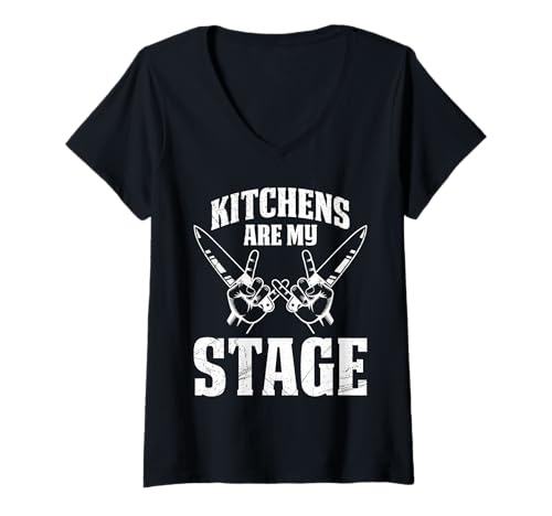 Womens Chef Kitchens are My Stage Funny Star Cook V-Neck T-Shirt