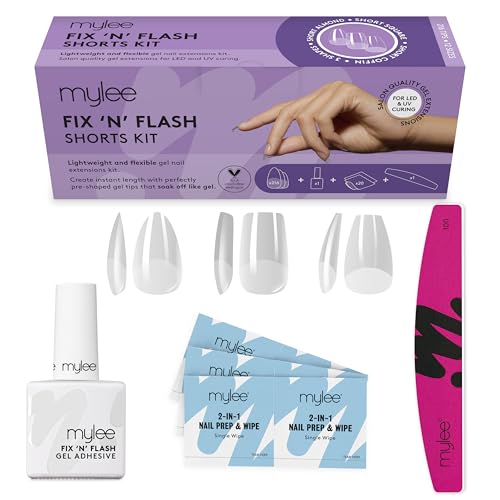 Mylee Fix N Flash Soft Gel Tips Shorts Kit, 3 shapes, 216pcs, Almond, Square & Coffin, Includes Gel, Prep Wipes & Half-moon Nail File, Full Cover, Nail Art Extensions, Flexible & Resistant (10ml)