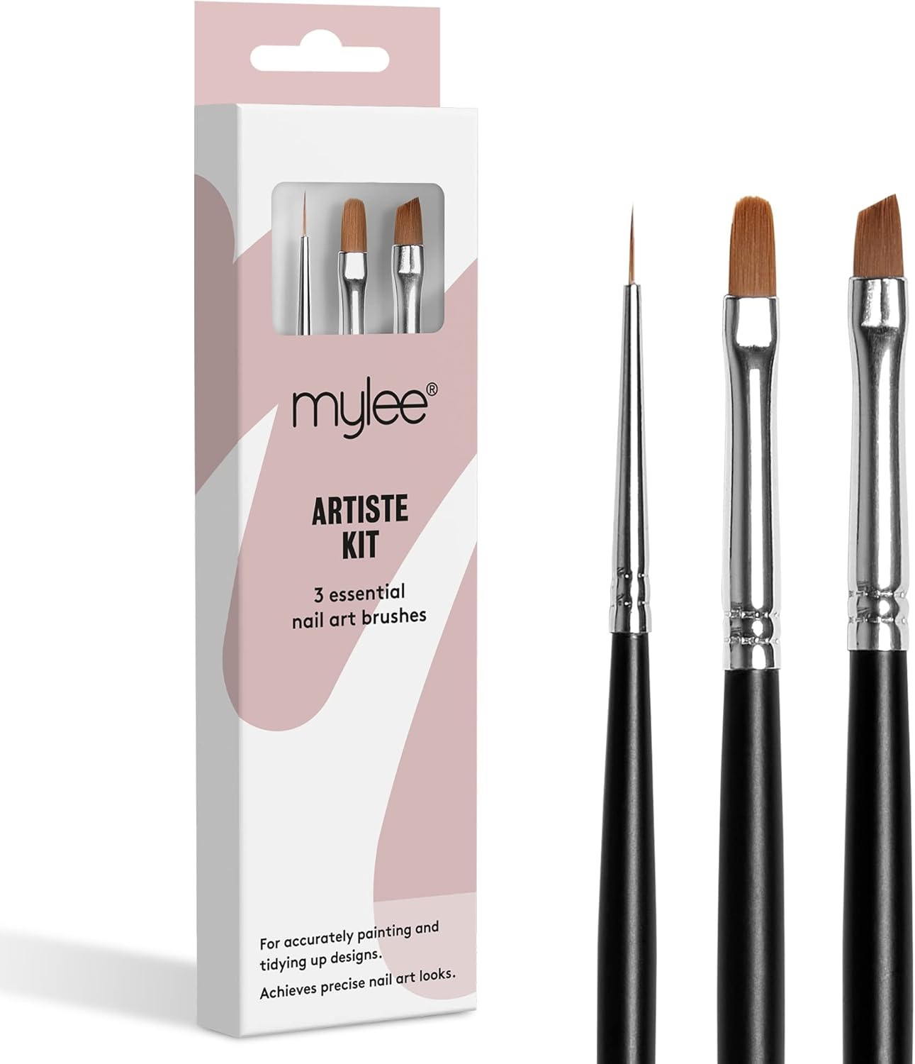 Mylee Artiste Nail Brush Kit, 3X Brushes Design for Gel Nail Art & Polish Applic